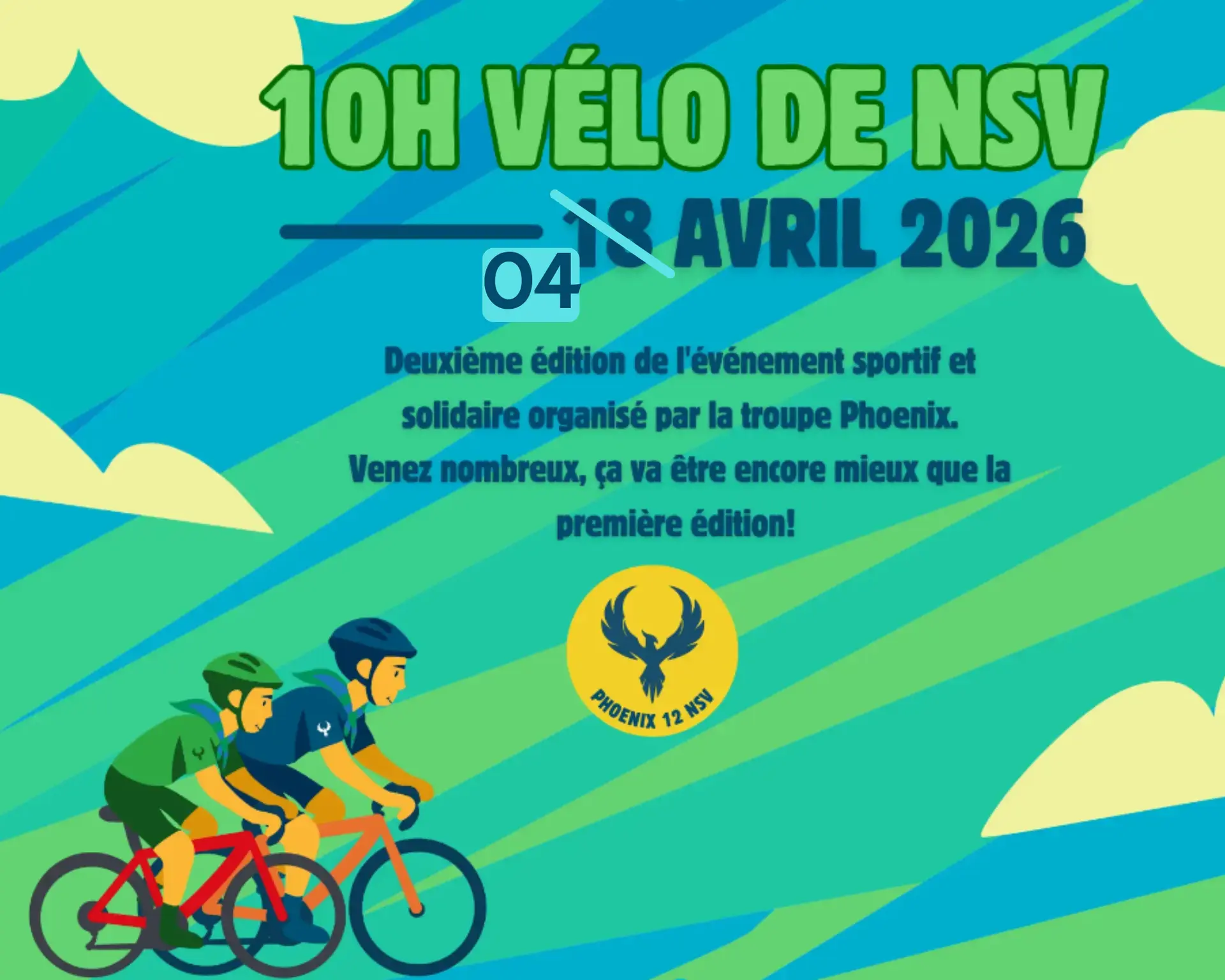 Les "10 Heures Vélo de NSV" est un grand événement scout organisé par la Troupe Phoenix de la 12e à Nil-Saint-Vincent. Cette année, l’événement rassemblera 8 à 10 troupes venues de toute la région, soit près de 400 à 500 animés, encadrés par 80 animateurs et soutenus par de nombreux visiteurs et parents. Pendant 10 heures non-stop, les scouts pédaleront en relais sur un circuit fermé, dans une ambiance à la fois festive et solidaire, avec un seul objectif : effectuer le plus grand nombre de tours possible ! chaque troupe a la possibilité d’inscrire jusqu’à 3 vélos.