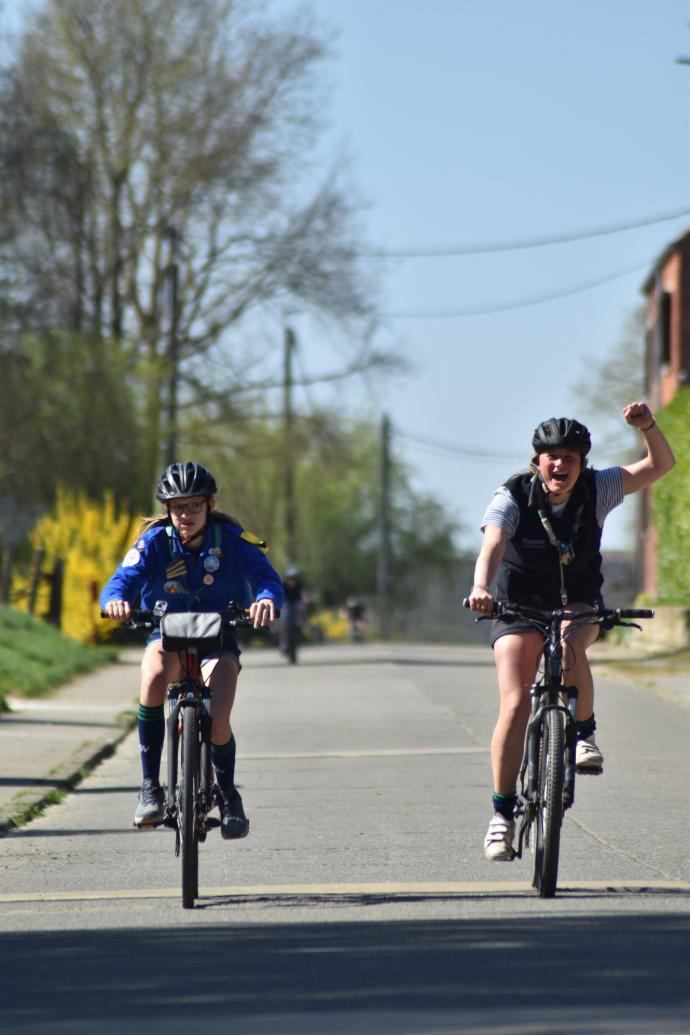 La Phoenix avait mis les petits plats dans les grands pour faire de cette première édition une réussite et la météo y a mis du sien aussi ! La place Saint-Martin ensoleillée fourmillait de scouts qui, entre deux tours de vélos, s’adonnaient aux multiples activités prévues : tournoi de spike ball, château gonflable, Elastorun, jeux en bois, tournoi de gobage de flans, tombola… Il y en avait pour tous les goûts ! Mais le cœur de l’événement se trouvait sur le parcours d’environ 2 km sur lequel les scouts des 4 troupes se sont relayés pendant 10 heures. Le classement est resté serré jusqu’au bout, pour finir par une victoire de la 43ème sur le fil, juste devant la Phoenix. La journée s’est terminée dans une ambiance de feu par une soirée endiablée au son des platines de Kodamix.