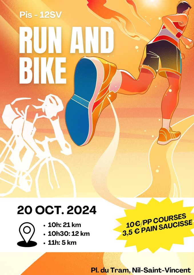 📅 Notez bien la date : Dimanche 20 octobre 2024 ! L’événement sportif le plus attendu de la région revient avec encore plus d'énergie, de défis et de bonne ambiance ! Que vous soyez compétiteurs aguerris ou amateurs en quête de fun, ce Run & Bike est fait pour vous !
