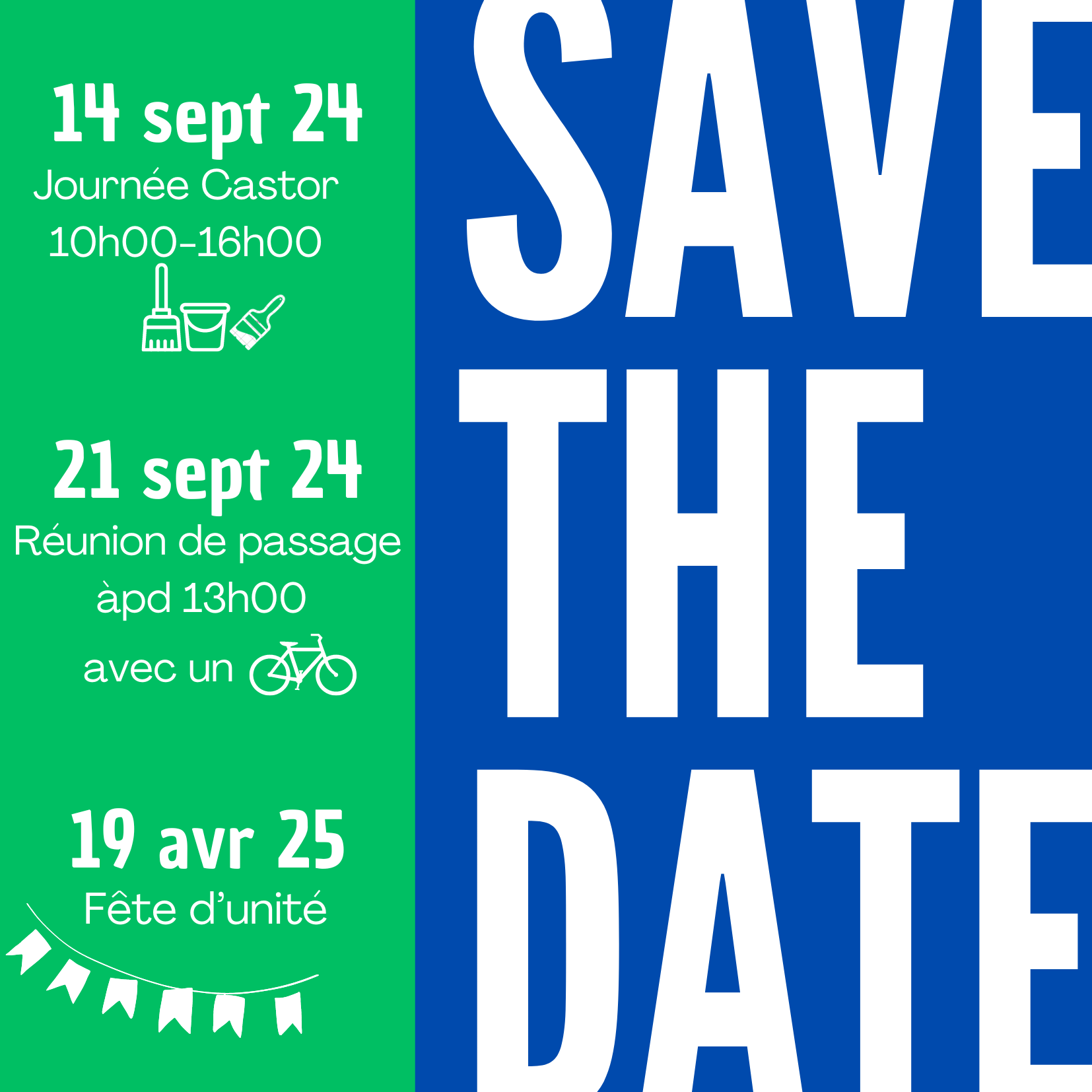 Les camps sont tous clôturés, mais voici déjà 3 dates essentielles à bloquer dans vos agendas pour l'année 2024 - 2025 ! De plus amples informations suivront bien sûr en temps voulu pour chacun de ces événements...
