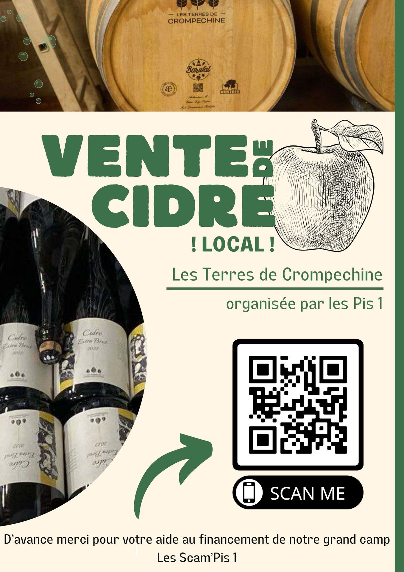 Cette année, nous vous proposons d’acheter un délicieux cidre que nous pouvons vous proposer grâce à notre collaboration avec Les Terres de Crompechines