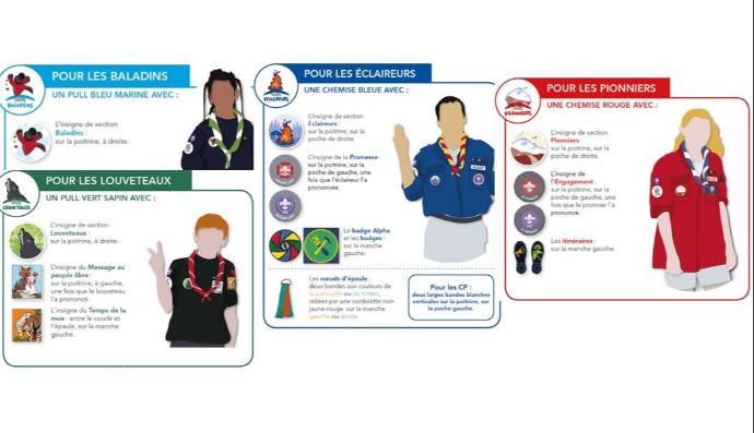 Tout scout qui se respecte vient à chaque réunion dans son plus bel uniforme. L'uniforme est spécifique à chaque section. Vous trouverez le descriptif sur la page de chaque section. Comme pour le foulard, l'uniforme peut se procurer à la scouterie.