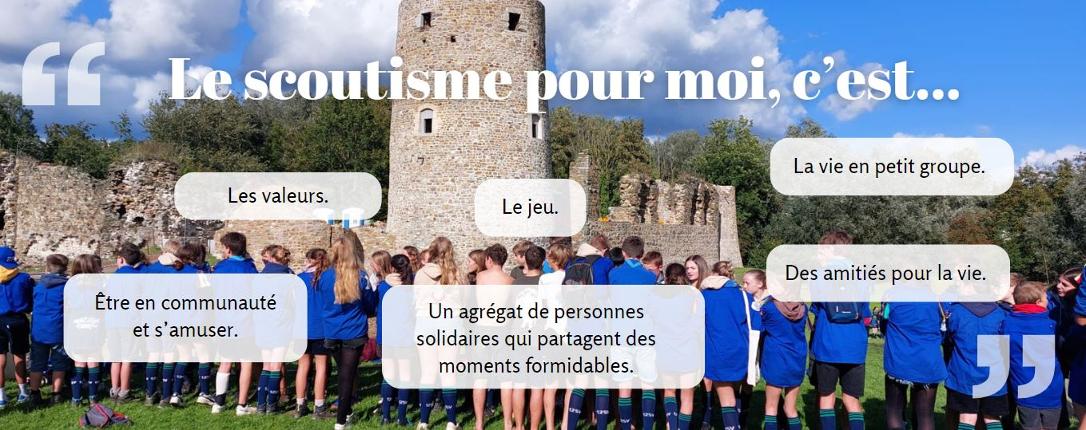 Tout au long de leur parcours, les scouts découvrent les valeurs de la Loi scoute qu'ils intègrent dans leur comportement et s'engagent à vivre.